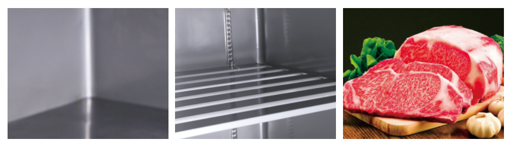The whole machine has integrated foaming, microporous high-density?foaming, and the continuous cooling effect is better. The thickness of the?table top is 70mm, the thickness of the cabinet body is 60mm, and the?thickness of the door body is 45mm.