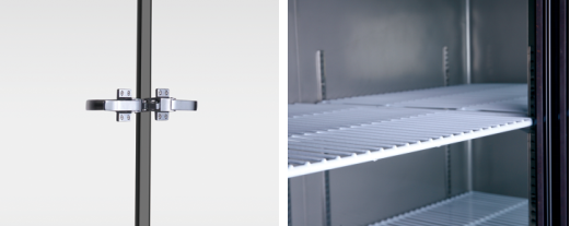 獨(dú)特散熱孔設(shè)計,快速散熱;自動回歸門吸磁門,避免不必要的冷量流失;可拆卸門封,清洗方便;加厚可調(diào)節(jié)層架,大承重力,內(nèi)部空間可自由調(diào)節(jié);高強(qiáng)度可調(diào)節(jié)腳柱,適合多做地面,保證機(jī)器平穩(wěn)運(yùn)行。
